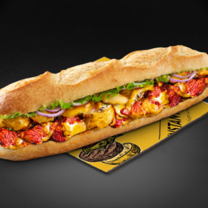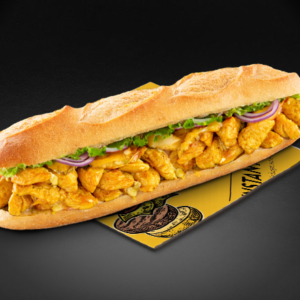 Baguette Tradition du Boulanger, Émincé de Poulet mariné avec notre marinade maison au Curry, Sauce et crudités au choix, Fromage au choix 🧀👍