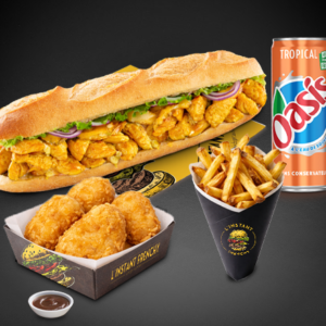 Baguette Tradition du Boulanger, Émincé de Poulet mariné avec notre marinade maison au Massala, Sauce et crudités au choix, Fromage au choix 🧀👍