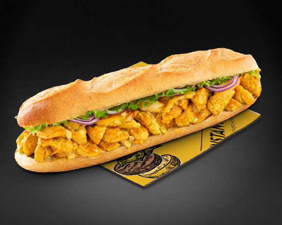 Baguette Tradition du Boulanger, Émincé de Poulet mariné avec notre marinade maison au Curry, Sauce et crudités au choix, Fromage au choix 🧀👍