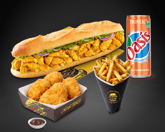Baguette Cury ou Tikka Massala ou Provençal + Petit Frites Maison + 4 Nuggets + 1 Boisson 33cl